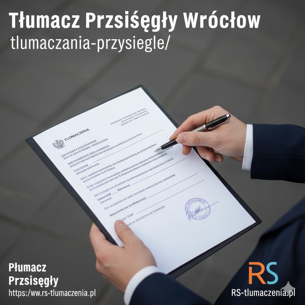 Tłumacz przysięgły Wrocław – wybór odpowiedniego tłumacza przysięgłego we Wrocławiu ma kluczowe znaczenie dla prawidłowego załatwienia formalności. Profesjonalny tłumacz gwarantuje nie tylko językową precyzję, ale również znajomość terminologii prawniczej i administracyjnej. Biuro RS Tłumaczenia oferuje kompleksową obsługę w zakresie tłumaczeń przysięgłych z języka angielskiego, zapewniając terminowość oraz najwyższą jakość wykonania.